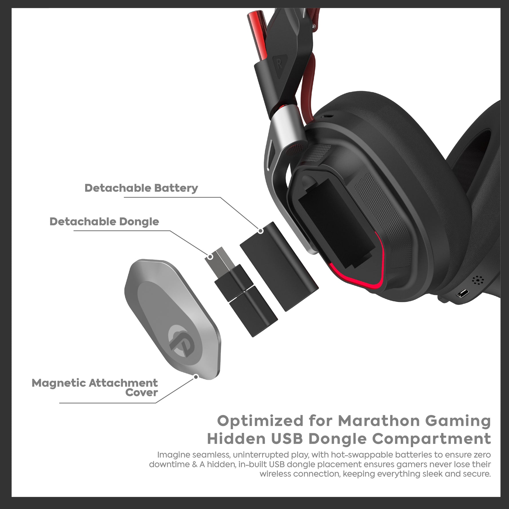 The HYTEK Pulse is a cutting-edge wireless gaming headset designed for ultimate performance. Featuring advanced 7.1 surround sound, hot-swappable batteries, and a detachable magnetic microphone, it ensures zero interruptions and crystal-clear communication. The hidden USB dongle compartment keeps your wireless connection secure, while Bluetooth 5.3 guarantees stable, lag-free audio across PC, console, and mobile platforms. With a lightweight ergonomic design and customizable accessories, it's built for comfort, durability, and endless gaming sessions.