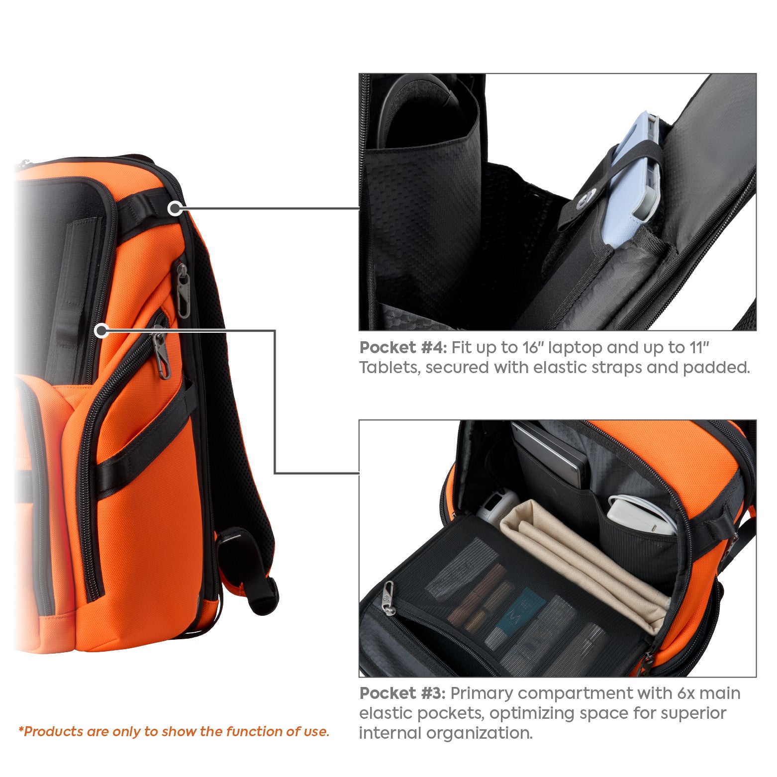 - Elevated Digital Capacity - Padded sleeves fit a 16" laptop + 11" tablet, ensuring safety and quick access.