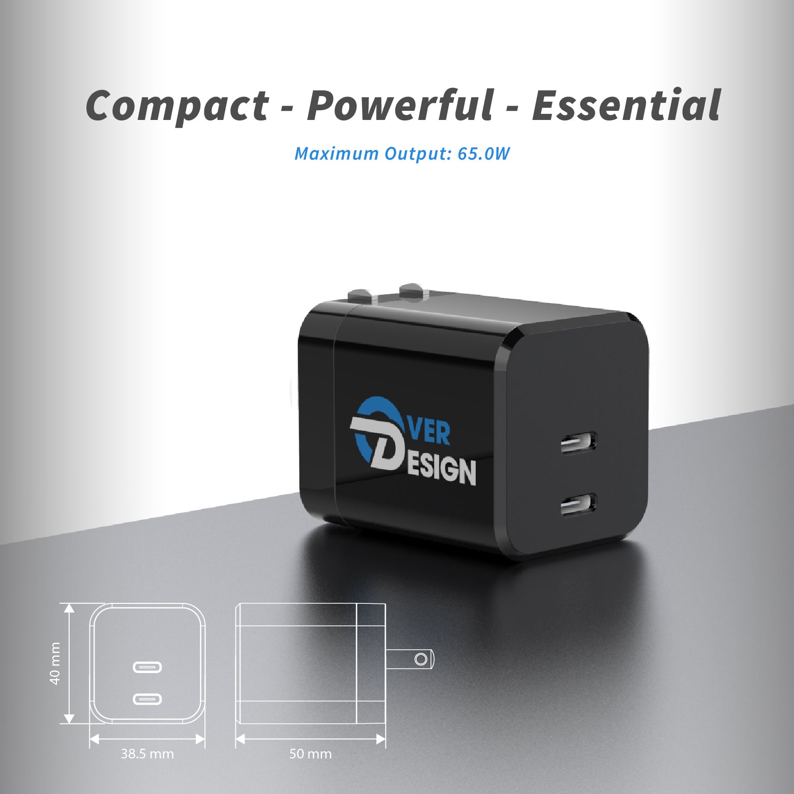 Unleash High-speed charging in a streamlined, travel-ready design. Engineered for maximum efficiency, this Dual-port USB-C charger delivers 65W of fast, intelligent power, ensuring laptops, tablets, and smartphones charge quickly and safely.