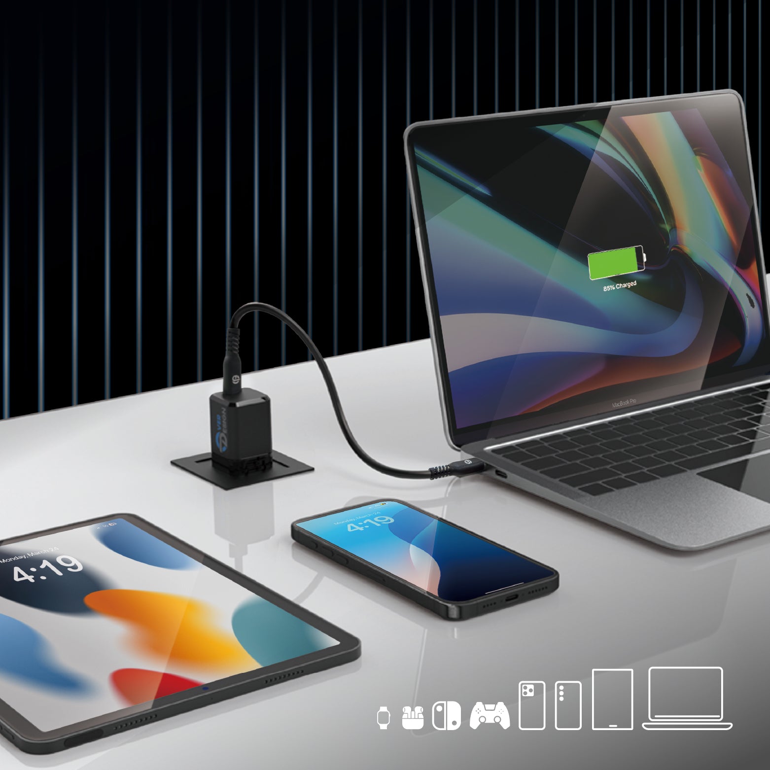- PD 3.0 & PPS 45W – Charges laptops, tablets & smartphones