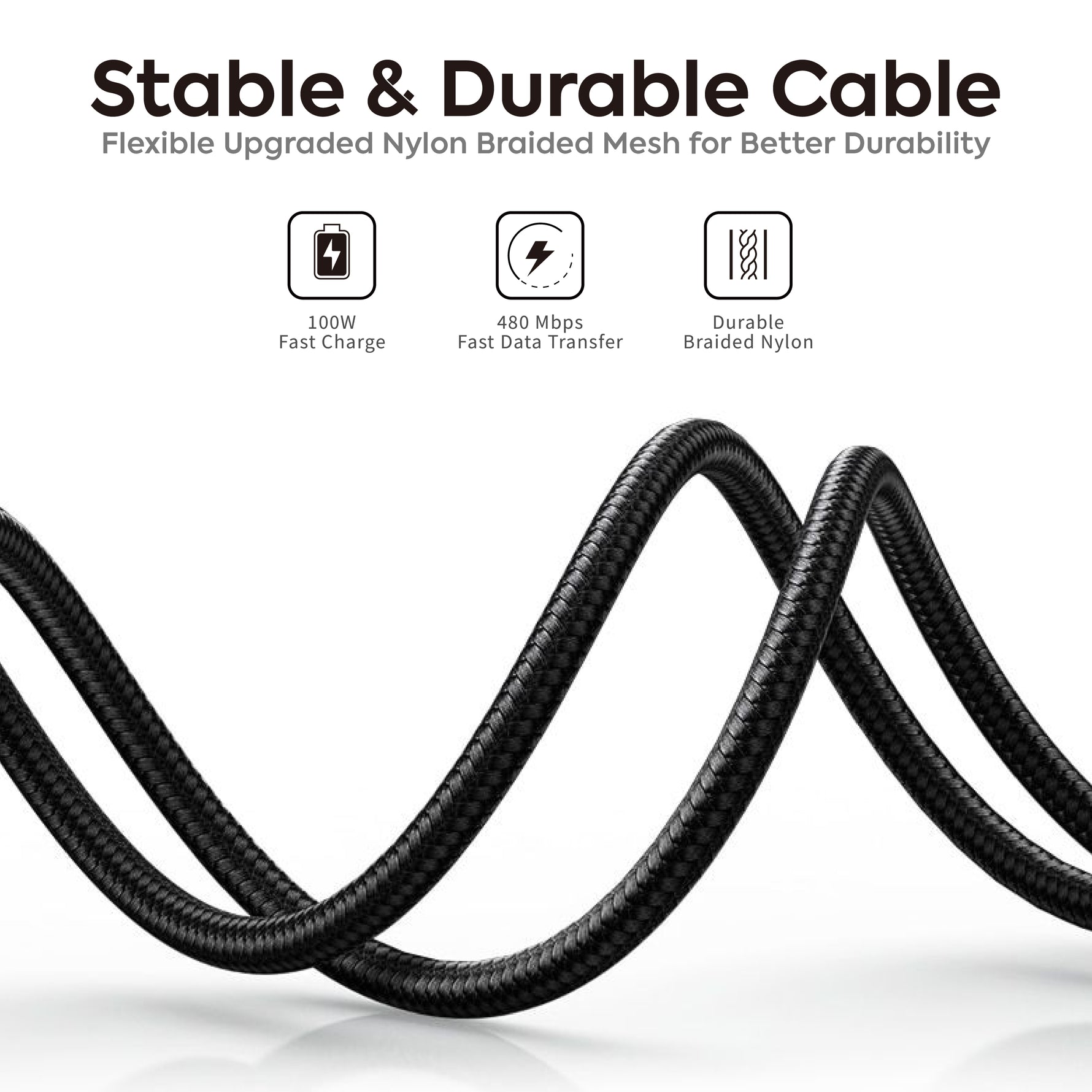 - Material: Braided Nylon Cable