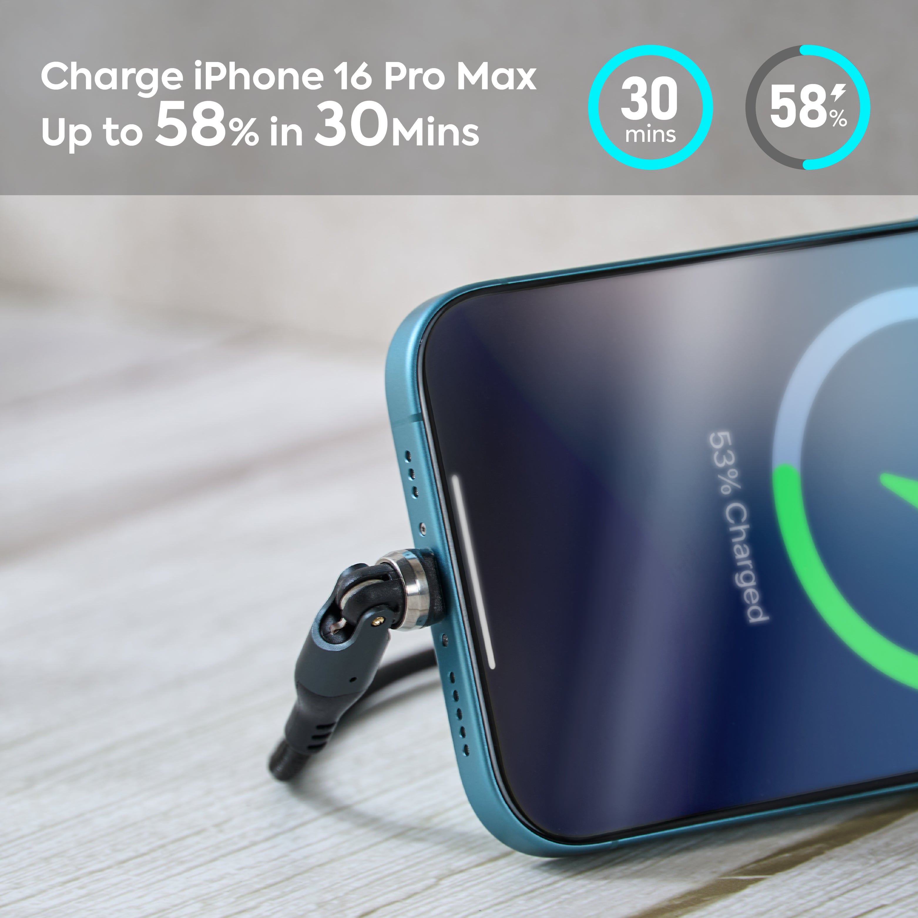 PD45W Ultra-Compact Charger & Revolt 540+180 Rotation Cable - 60W